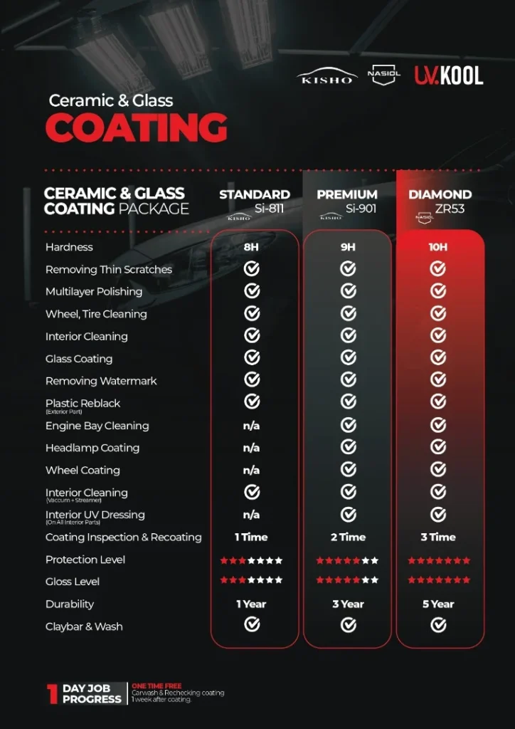 Our Premium Car Coating Package delivers long-lasting shine, water repellency, and UV protection — keeping your vehicle looking brand new for years.